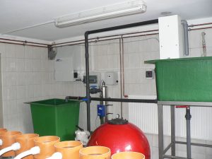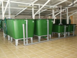 Wykonujemy od projektu “pod klucz” systemy hodowlane pracujące w reżimie zwrotnego obiegu wody (akwakulturowe systemy recyrkulacyjne – RAS). Wieloletnie doświadczenie pozwoliło nam opracować sprawdzone rozwiązania gwarantujące utrzymanie pożądanych parametrów przez właściwie zaprojektowany i wykonany system.